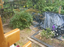 Так выглядит окончательный вариант места захоронения. По факту на этом участке мы переустановили памятники, восстановив одно из надгробий, покрасили оградку, замостили внутреннюю территорию брусчаткой и поставили лавочку со столиком. После окончания работ надписи на памятниках были дополнительно обработаны акриловой краской, это защитит их от пропадания в дождь и от пятен пыльцы растений и грязи.