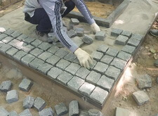 Укладка гранитной брусчатки,