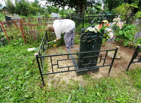 Уборка могилы на сельском кладбище